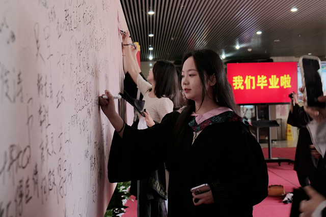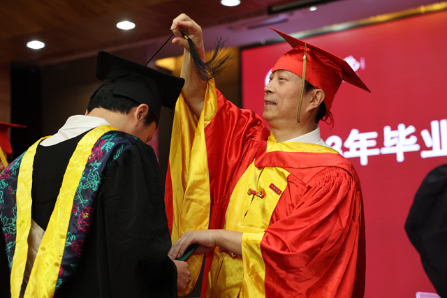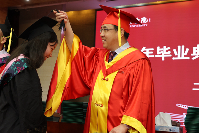 学位授予仪式上,校领导为同学们授予学位、扶苏、拨穗,并合影留念。最后,典礼在全体毕业生诵读《大学》(第一章)中圆满落下帷幕。