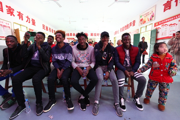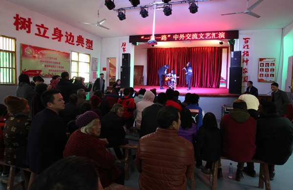 留学生们和当地村民一起体验了磨豆腐、打麻糍,并亲口品尝了自己的劳动成果。学生们都表示特别甜、特别好吃。之后留学生们在当地书法爱好者指导下,亲手写下了一幅幅春联,表达了新年的祝福,抒发了此行的兴奋之情。活动现场到处都洋溢着温馨友好的氛围。随后,留学生们来到文化礼堂,和下保村民艺术剧团一起合作给村民们带来了一场精彩纷呈的文艺演出。留学生展示了非洲传统舞蹈和歌谣,尤其是林黛和文慧两位同学带来的刚果民谣,旋律悠扬,充满了非洲风情,他们的独具特色的演出得到了现场所有观众的阵阵掌声和喝彩声,当地的小朋友们和留学生也迅速建立了友谊,加入到了留学生们的演出队伍当中。最后,留学生们参观了下保革命斗争陈列馆、农耕文化展等,了解了新余新农村建设的发展变化和中国农耕文化的历史变迁,留学生们纷纷表示不虚此行。
