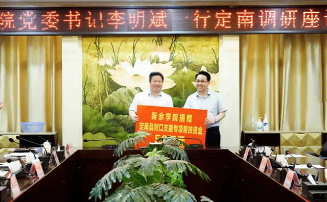 座谈会上,新余学院还向定南公办幼儿园捐赠了50万元。