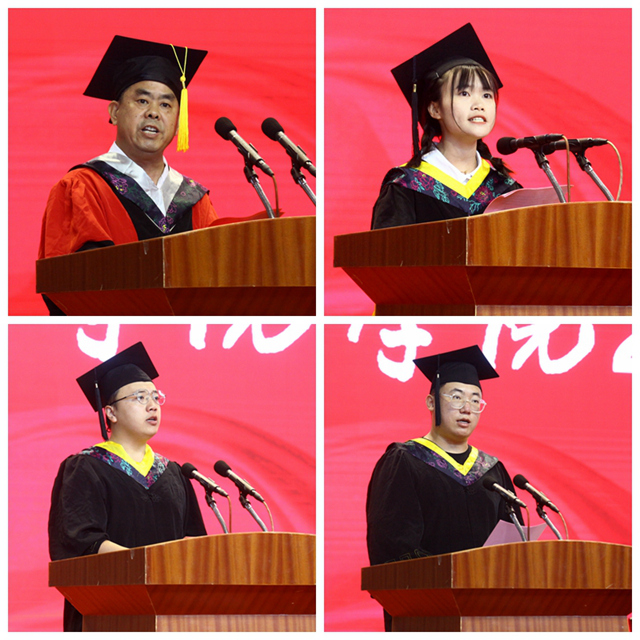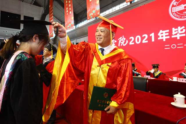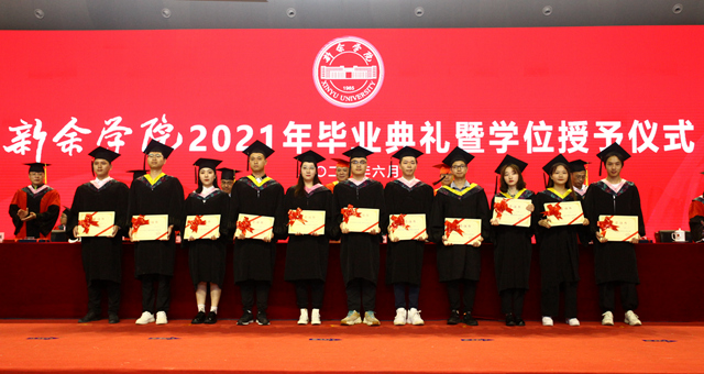 典礼上,党委委员、副校长龚丽春宣读了《新余学院关于表彰2021届优秀毕业生的决定》,全体校领导为优秀毕业生颁奖,并为毕业生代表颁发毕业证书和毕业纪念品——刻有学校logo和每一位同学姓名的紫檀印章。导师代表、毕业生代表相继发言,导师代表勉励大家,乘风破浪,再创辉煌,开启新的征程。三位来自不同专业的毕业生代表们表示了对母校的无限感谢与不舍,并表达了自己远大的志向和报效祖国的决心。