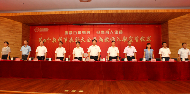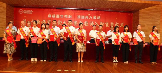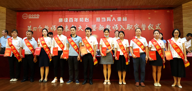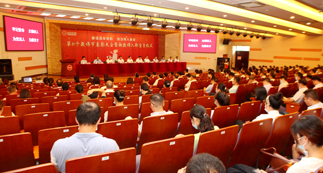 赓续百年初心,担当育人使命。9月10日上午,我校在图书馆学术讲堂举行庆祝第37个教师节表彰大会暨新教师入职宣誓仪式。校党委书记刘冬出席会议并讲话,校长张玉清主持会议。校党政班子成员李明斌、陈裕先、李敏、龚丽春、徐忠麟、刘志勇、姚伟、周文生、曾浩武出席大会,各单位正副职、政治辅导员、教师代表、先进个人、新入职教师共200余人参加大会。
