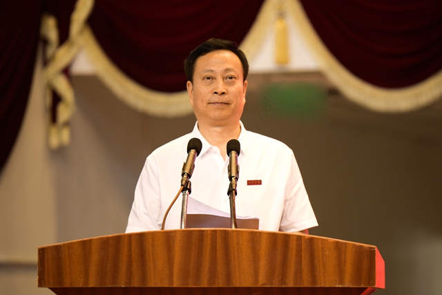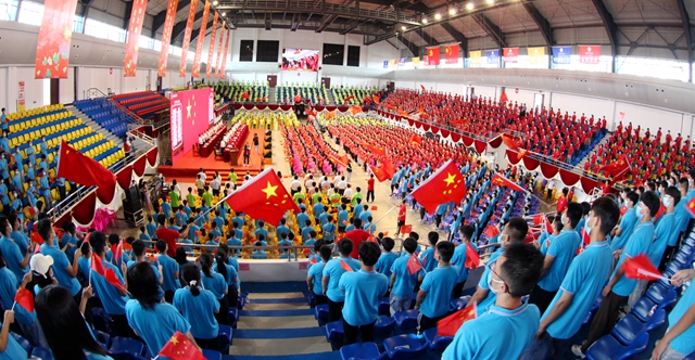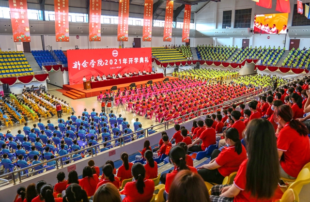 9月12日上午,新余学院2021级新生开学典礼在学校体育馆隆重举行。校党委书记刘冬出席典礼,并以“增强自信自觉 书写时代华章——深入学习贯彻习近平总书记‘七一’重要讲话精神”为题给全体新生上了入学的第一堂生动、鲜活的思政课。校长张玉清出席并讲话。校党政班子成员李明斌、陈裕先、李敏、徐忠麟、刘志勇、姚伟、周文生、曾浩武出席典礼。与会领导向新生代表授予校徽、学生证,各二级学院、各部门负责人及3900余名新生参加典礼。典礼由副校长龚丽春主持。