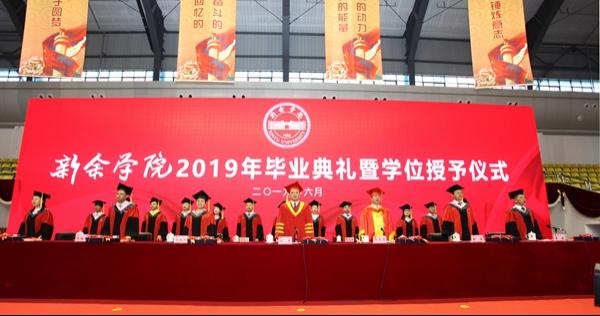 6月30日上午,在庄严雄壮的国歌声中,新余学院2019年毕业典礼暨学位授予仪式在体育馆隆重举行。校领导刘冬、张玉清、刘晓燕、胡涌、陈裕先、李敏、龚丽春出席典礼并为学生颁发毕业证书和学位证书,各二级学院、各部门负责人,导师代表、校友代表、毕业生家长代表,共计2100余人参加典礼。毕业典礼由校长张玉清主持。场馆内外气氛庄重而热烈,脸上洋溢着自信的毕业生们在这里欢聚一堂,与老师、家人、同学一起,共享毕业的喜悦。