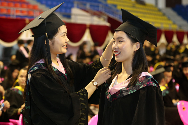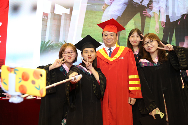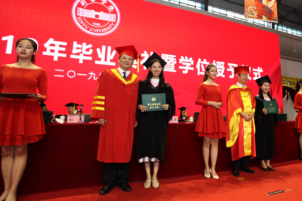 学位授予仪式上,毕业生们依次上台从学校领导手中接过学位证书,校领导为他们扶正流苏并合影留念,现场气氛十分活跃、和谐。大屏幕上播放着毕业生们在校生活的点滴,四年的感动与陪伴在此刻都浮现于他们眼前,引发他们的共鸣,而他们也将随着典礼的落幕,在夏天的风里握别,向母校道最后一声珍重,再见,再多的不舍与告别也终将成为他们追梦路上不懈动力。