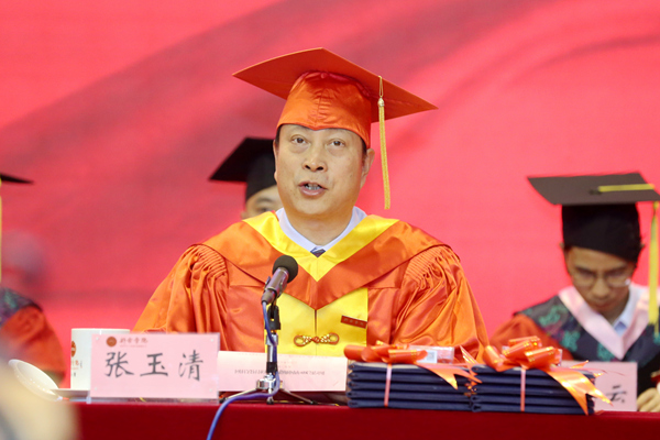 校长张玉清在主持仪式时向毕业学子表达了真挚而深情的祝福。他希望学子们努力奋斗,努力拼搏,实现精彩人生,演绎新余学院人的幸福与卓越。秉承“求新、求实、求善”校训,再创学校明日的辉煌,书写人生更加精彩的篇章。