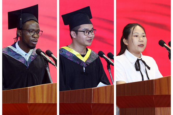 仪式上,党委委员、副校长李敏宣读了《新余学院关于表彰2019届优秀毕业生的决定》,校领导为优秀毕业生颁奖。导师代表、校友代表、毕业生家长代表以及毕业生代表相继发言。导师代表勉励大家,要以自信、真诚、奋斗的昂扬面貌去拥抱未来,开启人生新征程,校友代表表示,要做一个坚持梦想、脚踏实地、心向光明的人。家长代表表达了对学校培养优秀学生的感激之情,希望广大学生要饮水思源,不忘初心。三位来自不同专业的优秀毕业生学生代表深情地对母校诉说了无限眷恋,并表达了自己将继续秉承校训,追逐梦想,建设国家的坚定决心。