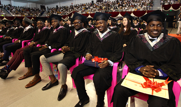 毕业典礼在全体师生齐唱校歌《驭马腾驰》的歌声中圆满结束。