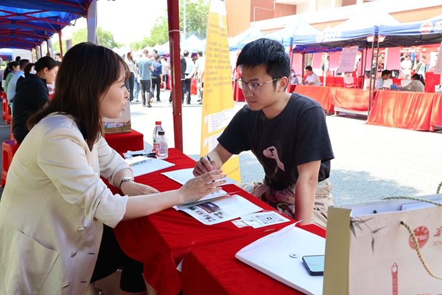 李明斌、张玉清等校领导来到招聘会现场,详细了解用人单位发展状况、岗位需求等情况,听取用人单位对学校人才培养的建议,询问毕业生求职准备及就业意向。李明斌、张玉清鼓励毕业生们把握机会,积极就业,早日找到自己心仪的工作,并要求相关职能部门抓住就业黄金期,继续推进访企拓岗,积极搭建就业平台,用心用情做好就业指导服务。招聘会现场,毕业生们手持精心准备的求职简历,与用人单位面对面交流,大家就自己感兴趣的领域或疑惑的问题与用人单位面对面交流,大多数求职者关注职业发展、薪资待遇、培训提高等问题。各二级学院负责人、就业专干、辅导员、班主任现场参会,与相关用人单位进行交流沟通、洽谈合作,并有针对性地向毕业生指导求职技巧。