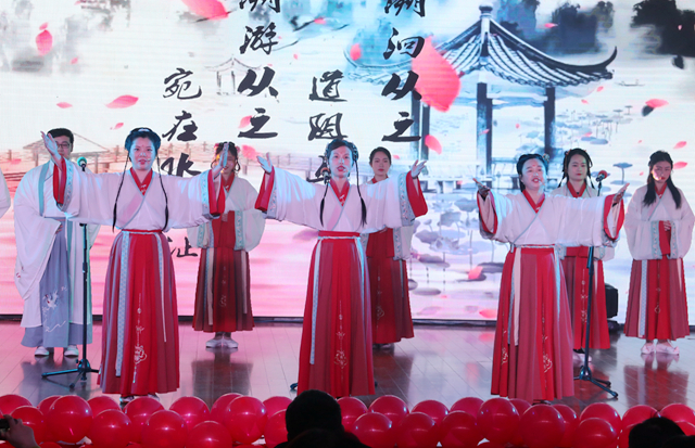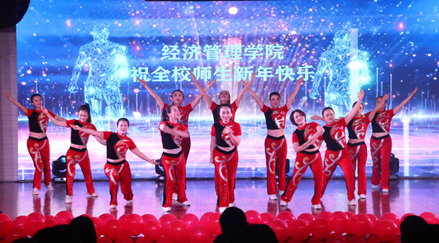 整场晚会高潮迭起、热闹非凡,晚会过程中还设置了抽奖环节,极大调动了现场气氛。演出结束后,校领导们走上舞台亲切慰问演员们并和大家合影留念。