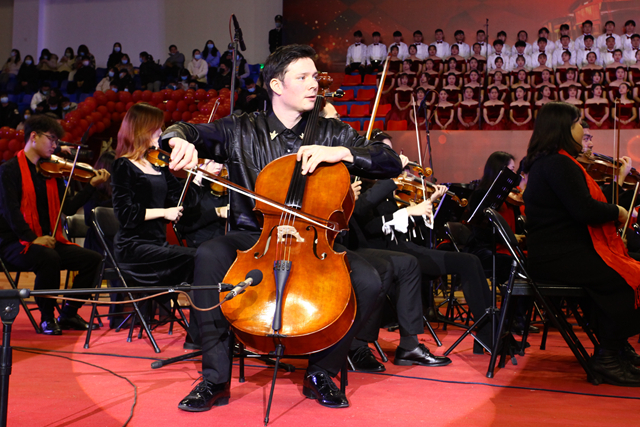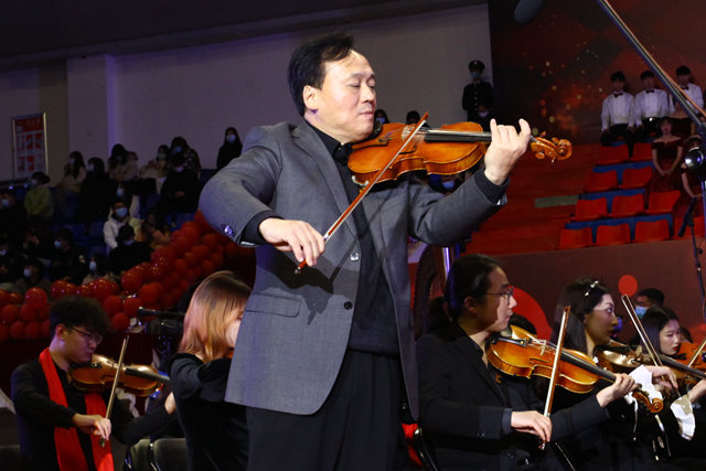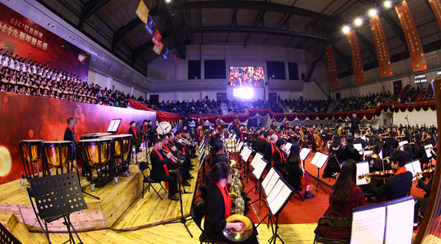 新年奏响新乐章,用音乐传递新年祝福。本次音乐会在慷慨激昂的交响曲《红旗颂》中拉开序幕,此曲真挚豪迈的旋律,引人追忆那段峥嵘岁月。党委书记刘冬的小提琴独奏《渔舟唱晚》旋律舒缓悠扬,乐调欢快轻松,展现了一幅夕阳映照、万顷碧波的图景,听罢依然余音袅袅,不绝如缕;合唱《保卫黄河》,以激越亢奋的旋律、铿锵有力的节奏,展现了抗日将士机智、勇敢战斗的情景,抒发了誓死保卫祖国的凌云壮志;《白毛女组曲》节奏明快,旋律优美如歌,饱含深情,既有淡淡的忧愁与缠绵,又散发出浓烈的热情与激昂;独唱《七律•长征》用音乐展现了不怕牺牲、排除万难、克敌制胜的长征精神;由洞村小溪流儿童合唱团演唱的《歌唱二小放牛郎》用饱满的热情,优美动听的童声营造出了欢快喜悦的氛围;大提琴独奏《爱的探戈》、《赛马》乐曲以其磅礴的气势、热烈的气息、奔放的旋律而深受观众喜爱;管弦乐《茉莉花》、《北京喜讯到边塞》、《红色娘子军组曲》、《太阳出来喜洋洋》曲调洋溢着愉悦自得的心情,充满了新年气息;一切向前走,都不能忘记走过的路,本次新年音乐会在大合唱《不忘初心》激情高涨的歌声中与在场全体师生热烈而富有节奏的掌声中圆满结束。