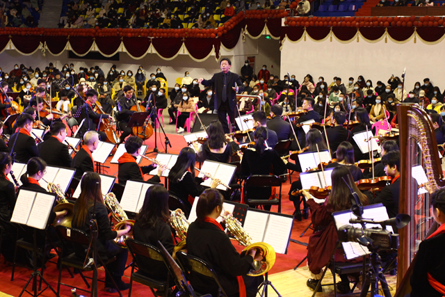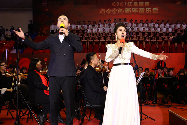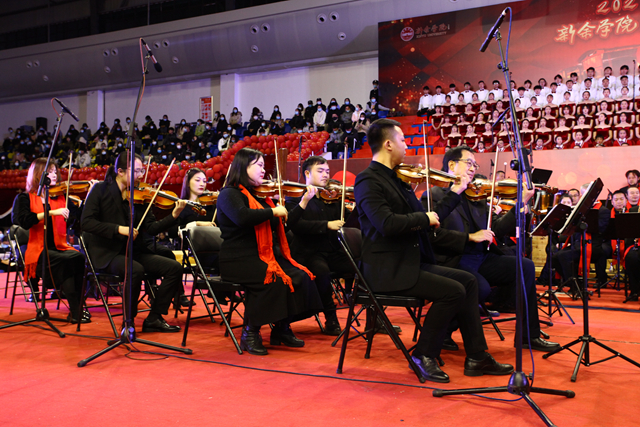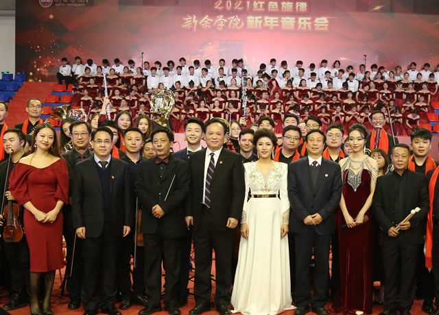 聆听经典红色乐曲,高唱新时代凯歌。12月28日、29日晚,新余学院2021年“红色旋律”新年音乐会在校体育馆隆重举行,我校爱乐乐团倾情演绎,与全校师生共迎新年。校党政班子成员刘冬、张玉清、李明斌、陈裕先、李敏、龚丽春、徐忠麟、刘志勇、张发云、姚伟、周文生、曾浩武与在场师生一同观看音乐会演出。