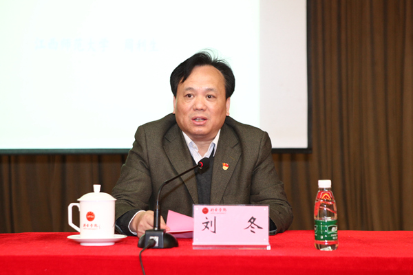 11月27日上午,学习贯彻党的十九届四中全会精神宣讲报告会在我校图书馆学术讲堂举行。省委宣讲团成员,江西师范大学党委宣传部部长、马克思主义学院院长周利生教授给我校500余名师生上了一堂精彩的全会精神解读课。宣讲会由党委书记刘冬主持。学校党政班子成员、全校副科以上领导干部、马克思主义学院教师、全体辅导员和部分学生代表参加报告会。