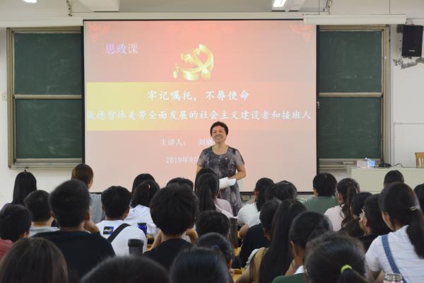 9月18日下午,校党委副书记刘晓燕在主D多媒体教室给建筑工程学院2019级新生带来以“牢记嘱托,不辱使命——做德智体美劳全面发展的社会主义建设者和接班人”为主题的思政课。