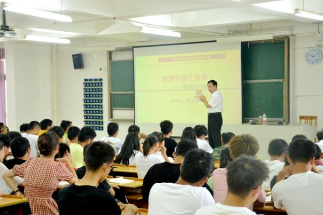 校长张玉清以“健康中国之体育-我的理念与实践”为题,围绕健康教育对大学生的重要性这一主题,通过自身多年学习、教学的理论和实践的经验,从几个方面为2019级新生普及健康知识,引导大学生缓解学习、生活压力,塑造健康体质,强化自身使命和担当。他勉励新生们珍惜大学时光,刻苦学习,以求新、求实、求善的校训精神为指引,积极践行打造忠诚校园的倡导,力争成为优秀青年。