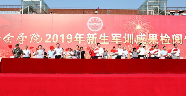在喜迎中华人民共和国成立70周年之际,9月15日上午,我校2019级新生军训成果检阅仪式在学校南田径运动场举行,2800余名新生以此告白祖国。校党委书记刘冬出席仪式并宣布新余学院2019年新生军训闭营。校长张玉清宣读《新余学院关于表彰2019级新生军训优秀学员和优秀教官的决定》。校领导刘晓燕、胡涌、陈裕先、李敏、龚丽春、郭瑞新及承训部队相关领导出席仪式。各部门、各二级学院负责人参加仪式。仪式由校党委委员、副校长胡涌主持。