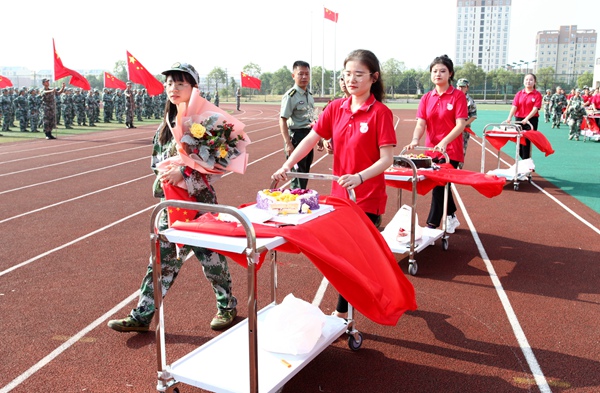 会上,与会领导为受表彰的优秀教官和优秀学员颁奖;军训学生代表作了发言。“祝你生日快乐,祝你生日快乐……”一曲《生日快乐歌》在田径运动场上空回荡,学校领导及参加2019级学生军训成果检阅仪式的全体师生为当天过生日的24名参训新生共同唱响一首生日歌,并送上了鲜花和生日蛋糕,为他们过了一个难以忘怀的生日。