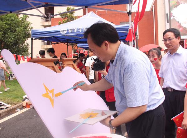 端午节是中华民族的传统节日。粽米飘香,龙舟竞渡,作为首个入选世界非遗的中国传统节日,端午节凝聚着中华民族优秀的传统文化。本次活动分为表演展示和风俗展示两个环节。表演展示环节为大家呈现了古典舞蹈《思慕》,诗朗诵《新时代 新征程新青年》,大合唱《我爱你中国》等节目,精彩的演出让在场的每一位观众都感到满满的正能量。风俗展示区包含5个活动,分别是包粽子、画龙舟、包香囊、立蛋、手绘。传统活动激发了青春热情,老师和同学们都玩得不亦乐乎!特别是此次活动的重头戏——手绘国旗,还受到了刘冬书记等几位校领导的青睐。同学们也纷纷上前,用自己的“青春色彩”绘制了一幅鲜艳的五星红旗。
