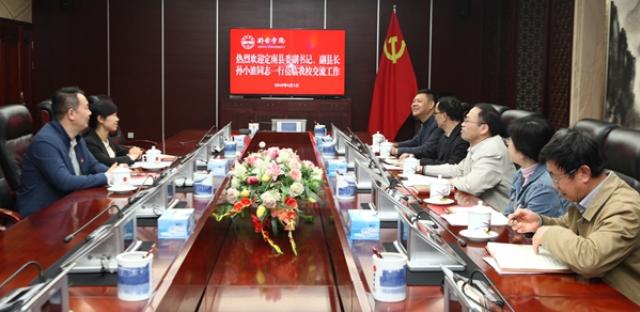 会谈中,刘冬代表学校对孙小波一行的到来表示热烈欢迎,表示学校将继续按照省委、省政府的要求,以高度的政治责任感,深入推进定南苏区振兴发展,继续为定南教育扶贫提供力所能及帮助,进一步做好新余学院与定南县对口教育扶贫支援工作,把对口支援工作抓实、抓细,为定南县决胜全面建成小康社会作出应有的贡献。孙小波代表定南县委、县政府对新余学院三年来无私的对口支援表示衷心的感谢,并邀请新余学院领导方便之时到定南县开展调研,指导对口支援工作。