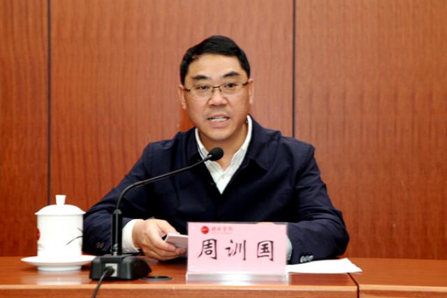 周训国在讲话中就进一步加强学校领导班子建设,提高领导干部办学治校能力提出三点要求,一是要提高领导班子办学治校能力。提高干部队伍素质,增强办学治校能力是学校发展中迫切需要解决的突出问题,要坚持党管干部原则,努力建设一支高素质专业化干部队伍。首先要始终坚持把政治标准放在第一位,要有更高的政治觉悟、更高的思想境界和更高的道德标准。其次,要着力提升专业能力,培养专业精神。二是领导干部要在把方向抓落实、聚合力促发展、抓特色强内涵、保稳定促和谐等方面提高办学治校能力。三是领导干部要在强化学习上下功夫、在实践历练上下功夫、在严格自律上下功夫,在实践中提高办学治校能力。