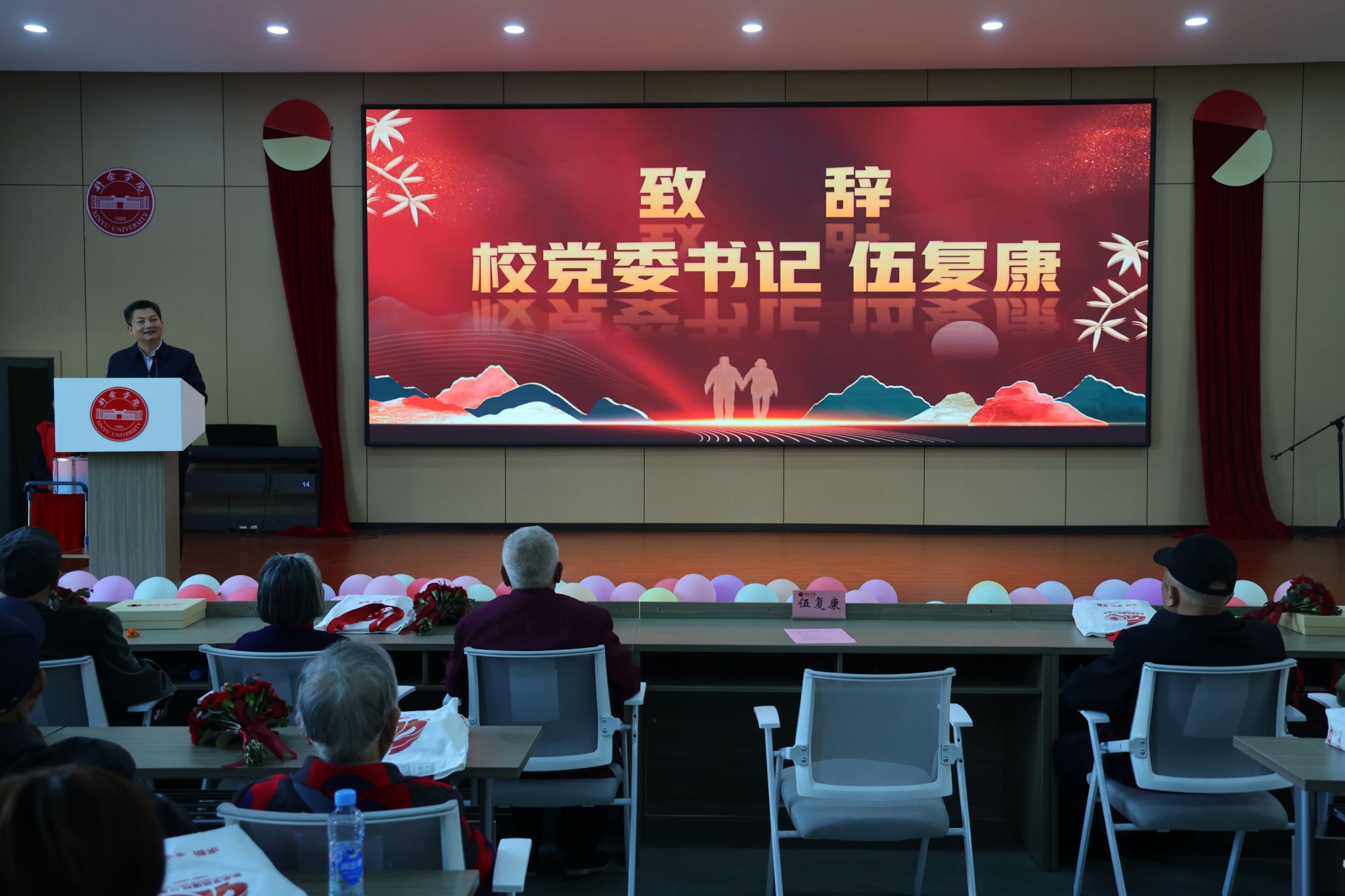 伍复康强调,尊老敬老是中华民族的传统美德,更是新余学院校园文化的重要组成部分。学校今日的成就是建立在老一辈打下的坚实根基之上;学校未来的发展,更需要传承好、发扬好老一辈的宝贵精神和经验。学校将一如既往地高度重视离退休工作,认真落实好各项政策待遇,努力在思想上关心、生活上照顾、精神上关怀老同志,为老有所养、老有所乐、老有所为创造更好的条件。同时希望离退休老同志能够继续发挥余热,为学校的改革发展建言献策,传经送宝,共同描绘新余学院更加美好的明天。