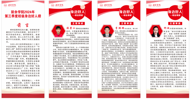 经校级评审和公示后,共推选和发布2024年第三季度校级身边好人11人,其中敬业奉献9人、助人为乐2人。同时,推荐体育学院张景山老师参评新余市“身边好人”。推荐人选或是业绩突出,数十年如一日,始终坚守岗位;或是品德优良,乐于助人,始终有一颗奉献之心,充分展示了我校师生的精神风貌和优良作风。
