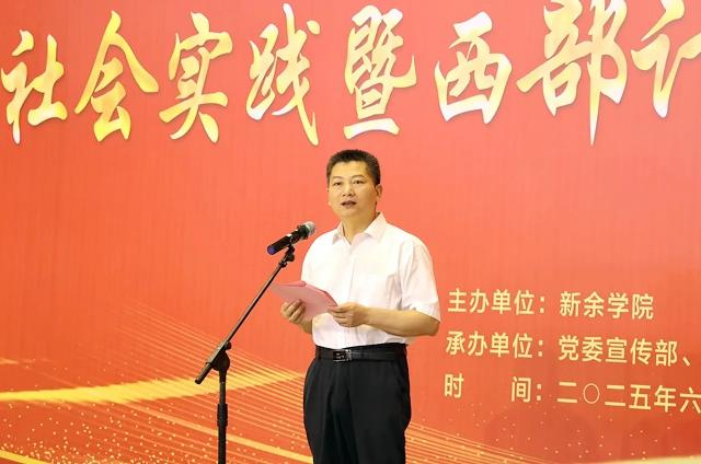 仪式上,伍复康代表学校党委、行政,向即将奔赴全国各地开展社会实践和志愿服务的同学们表达最诚挚的问候和最崇高的敬意。他指出,在40年的办学历程中,学校与祖国共进、与时代同行,为江西和新余地方经济社会发展输送了数万名毕业生,成为城市发展的重要支撑,其中所体现的敢为人先、艰苦奋斗的精神,是新院宝贵的财富,也激励着同学们在实践中勇挑重担。暑期社会实践和西部计划,正是青年践行使命、投身时代浪潮的重要契机。