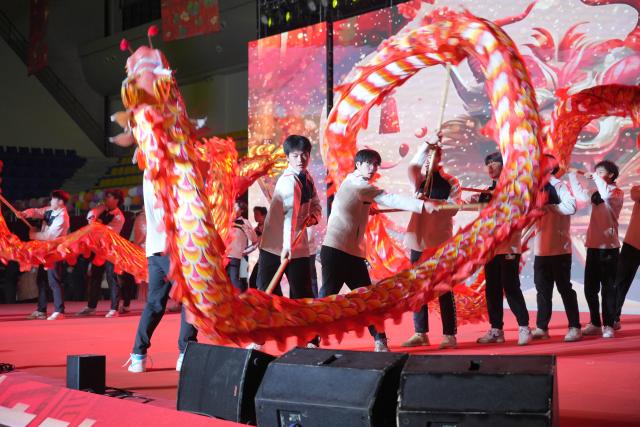 文艺晚会共分为三个篇章——“话往昔,岁月如歌”“迎新春,欢聚一堂”“创未来,砥砺前行”,邀请优秀校友返校与学校师生共同担任晚会主持。一曲由艺术学院合唱团带来的优美恢宏的校歌合唱——《驭马腾驰》拉开了晚会的序幕,体育学院舞龙队《龙腾虎跃》将现场喜庆热闹的气氛点燃,歌伴舞《幸福中国一起走》像一团火温暖着冬季,又像一股清风温润在场观众的心灵。整场晚会节目形式多样,内容丰富精彩。有来自附属学校师生的舞蹈《童年记忆》,把现场观众的思绪带回无暇的童年;对外合作交流中心的老师携手全体留学生带来小合唱《今生缘》,表达了来自不同国家的同学相聚于新余学院一起学习生活,拥有美好时光的缘分和热爱;退休老教师带来的舞蹈《中国脊梁》,挥动的国旗是自强不息奋斗精神的体现,优美的舞姿辉映和着有力的步伐,让大家感受到老教师们为教育事业耕耘一生的坚定和对生活、对祖国的热爱;器乐演奏《美丽的神话》《灯火里的中国》《步步高》等,是民族乐器和西洋乐器的碰撞,更是文化的交汇与创新传承;博士老师们的三句半《幸福2025》,用幽默诙谐的方式回顾往昔、展望未来,表达对新年的美好祝愿;服饰秀《融今古》,老师们将传统服饰与学生的设计服饰完美呈现,博得现场阵阵掌声;文学与传媒学院教师创作并演绎的为学校建校四十周年所写的诗歌《我们这四十年》,带着大家忆起学校一路成长发展的岁月,饱含深情和对未来的期待;来自学校各部门和二级学院的老师们带来大家耳熟能详的歌曲《光辉岁月》《不再犹豫》《海阔天空》《上春山》,校园十佳歌手带来的《爱的诉说》《红日》《骄傲的少年》,师生共同演绎的舞蹈《师生同乐赏花灯》《青春飞扬》《石榴花开》等将现场气氛一次次带向高潮。最后,晚会在校友和学校教师共同演唱的《领航》歌声中落下帷幕。本次晚会节目亮点纷呈,将时代特色与艺术融于一体,将学校发展历程与校训精神贯穿其中,彰显我校师生无畏风雨、顽强拼搏和热情活力、斗志昂扬的精神面貌。现场热情洋溢,观众们尽情挥舞手中的荧光棒,掌声、欢笑声、赞叹声交织在一起,声声入耳。