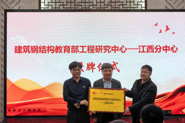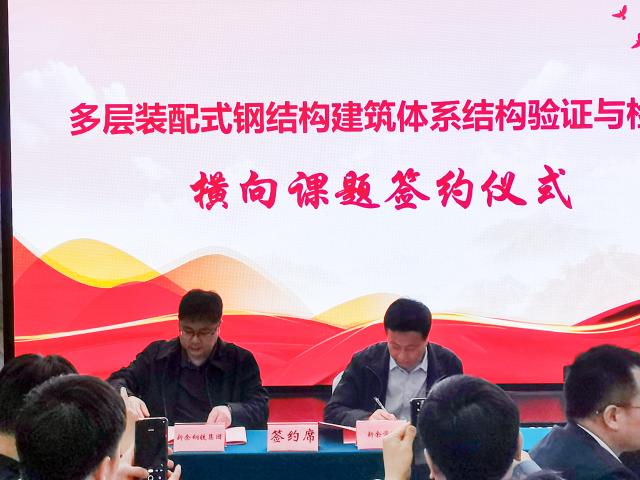 会议后半程,进行建筑钢结构教育部工程研究中心江西分中心授牌仪式、多层装配式钢结构建筑体系结构验证与检测横向课题签约仪式。