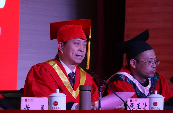 仪式上,张玉清代表学校向圆满完成学业的2020届春季毕业留学生表示了真挚的祝贺和美好的祝愿,向为培育学生们而付出心血与汗水的各位老师表示衷心的感谢和崇高的敬意。他希望留学生们怀揣梦想,继续前行,希望留学生们永远记得在新余学院度过的青春岁月,在未来架起中非友谊的桥梁。随后,他向毕业生颁发了毕业证书和学位证书。