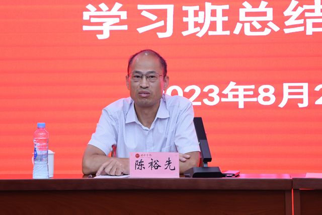 总结交流会上,党委委员、副校长陈裕先受党委副书记徐忠麟委托作结班式讲话。陈裕先对此次学习班顺利举行表示肯定。他表示,新一轮本科教育教学审核评估是对学校本科教育教学工作进行的一次全面总结、全面审视和全面诊断,是对学校办学实力、办学水平和影响力的一次大检阅、大展示,更是学校深化教育教学改革、推进教学建设、强化教学管理、全面提升人才培养质量的又一次大好机遇。他强调,一要统一思想、高度重视。要准确把握此次审核评估对于推动学校高质量发展的重要意义,充分了解新一轮教育教学审核评估工作的内涵。二要学深悟透,准确把握评估工作的精髓要义。落实指导思想,明确工作目标,认清评估范围,把握评估重点,查找工作短板,制定改进措施,在“比学赶超”中找差距,勇争先。三要凝心聚力,扎实做好迎接评估的各项准备工作。要立即行动起来,把思想统一到审核评估工作上来,通力协作、强化督导,确保在2025年交出我校本科教育教学审核评估的满意答卷。