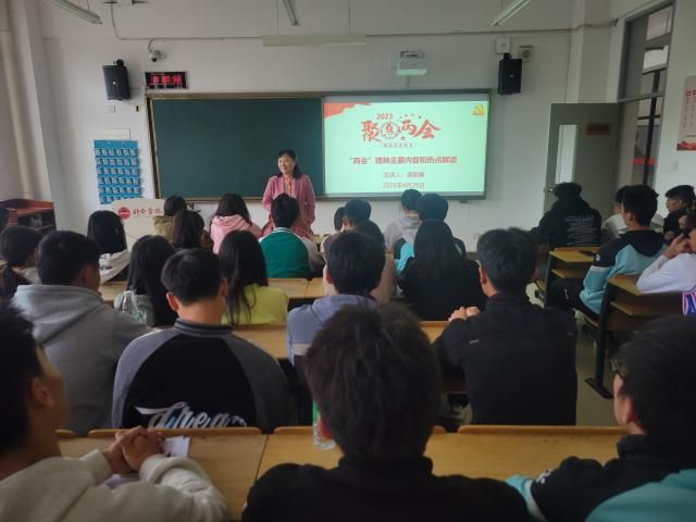 龚丽春以“两会 精神主要内容和热点解读”为题,结合学校实际,深刻解读 两会精神。最后,龚丽春要求同学们正确认识我国经济社会发展形势、政策及其给自身带来的机遇和挑战,鼓励同学们把实现中华民族伟大复兴作为奋进新征程、建功新时代的强大动力,以强烈的政治责任感和历史使命感,切实把两会精神落到实处。