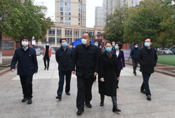 3月4日下午,市委书记蒋斌到我校附属学校调研指导复学准备工作。市委常委、宣传部部长李瑞峰,副市长陈文华,以及校党委书记刘冬,校长张玉清,副校长胡涌,纪委书记郭瑞新等陪同调研。