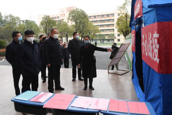 进入附属学校,蒋斌主动接受体温检测,现场查看学校临时停留点、体温检测点的全自动红外体温筛查和人脸识别系统等。调研中,蒋斌认真察看防控与应急处置流程图,详细了解晨午检等相关制度,实地察看了临时留观点、物资储备点,对附属学校疫情防控战“役”图结构化、明晰化、细致化给予了肯定。他强调,要深入贯彻落实习近平总书记重要讲话精神,坚决贯彻执行上级关于学校复学的统一安排部署,切实把师生生命安全和身体健康摆在第一位,统筹抓好疫情防控和复学工作,做实做细各项准备工作,坚持做到有模有样、有章有法、有举有措、有成有就,打一场有准备之仗,坚决将疫情挡在校门之外,全力确保复学工作有序进行。