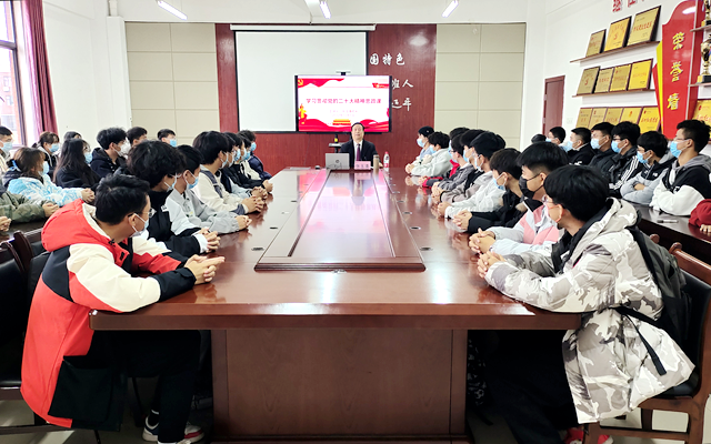 刘志勇强调,党的二十大是在全党全国各民族迈上全面建设社会主义现代化国家新征程、向第二个百年奋斗目标进军的关键时刻召开的一次十分重要的会议,要把宣传贯彻党的二十大精神作为当前和今后一个时期的首要政治任务,坚持学思用贯通、知信行统一,推动党的二十大内化于心、外化于行。他从“深刻领悟党的二十大的精髓要义”、“准确把握党的二十大关于全面从严治党的新部署新要求”、“为贯彻好二十大精神青年学生应该怎么做”三个方面做了系统解读和深入阐释。最后,他希望,一是广大教师做好青年学生的引路人;二是同学们将自己的梦想融入伟大的中国梦;三是同学们有坚持梦想的勇气和毅力。