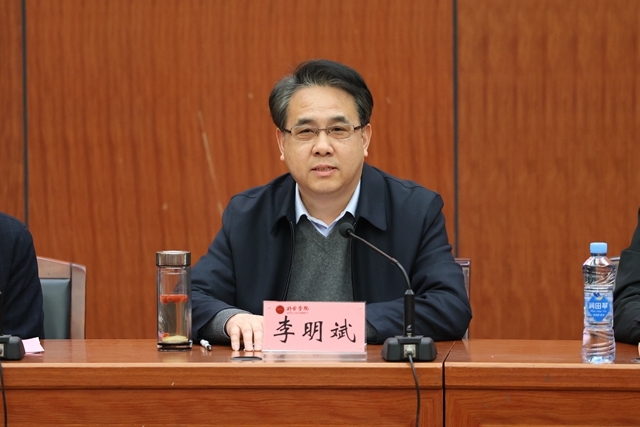 3月17日,学校召开党委理论学习中心组学习(扩大)会,专题传达学习贯彻全国两会精神。校党委书记李明斌主持会议并就学习贯彻习近平总书记重要讲话和全国两会精神提出要求。全国政协委员、校长张玉清传达全国两会精神和全省领导干部会议精神,分享了参加全国两会的经历和感受。校党政班子成员徐忠麟、陈裕先、李敏、刘志勇、周文生、曾浩武、姚伟出席会议,各二级学院、各部门、附属学校负责人参加会议。