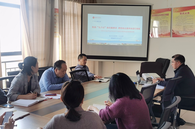 会上,支部负责人以专题党课的形式,对习近平总书记关于党的自我革命的重要思想中“九个以”实践要求的精神要义做辅导,对全体党员进行思想、作风、党性再教育。开展警示教育学习,有效提高了全体党员对全面从严治党永远在路上、党的自我革命永远在路上的理解,增强了党员廉洁自律、艰苦奋斗过紧日子的意识,在思想上对推进党的作风建设进行了再动员。