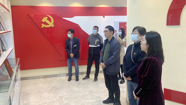 第四支部党员们一行先后参观了水北商会展示馆、办公室、会议室等场所。在水北商会党务工作者的介绍下,详细了解了商会十多年来的发展历程及“举党旗、抱团干、带民富”的“党建+乡镇商会”模式特征。据了解,新余水北商会于2012年8月成立以来,两次受到习近平总书记的关注。水北商会以党建带会建,商会坚持党建引领,在乡村振兴、颐养之家、捐资助学、扶弱救困、疫情防控等方面做出了突出贡献,商会党委带领320名会员参与“万企兴万村”行动,团结引导广大有情怀的民营企业家先富带后富、促进共同富裕,累计为家乡建设捐款捐物达2.1亿元。