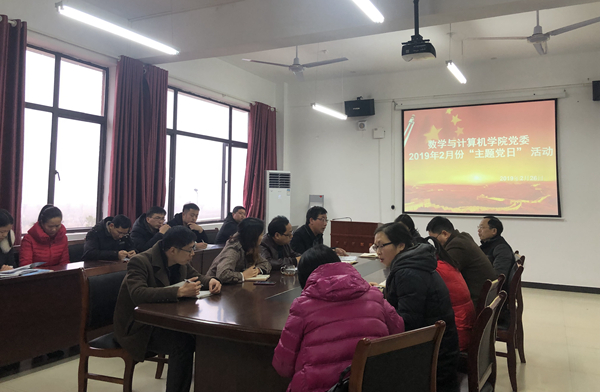 2月26日下午,数学与计算机学院教工支部和学生支部全体党员在党员活动室召开2019年2月份“主题党日”活动。