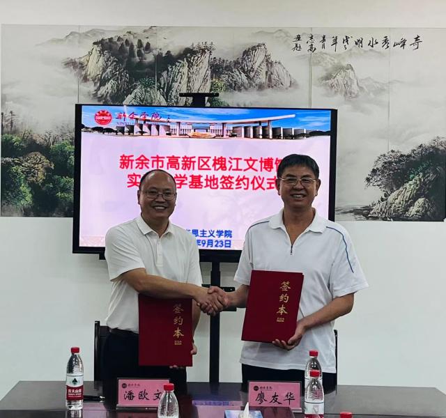 (文/马克思主义学院 刘思疑)9月23日,新余学院马克思主义学院与新余市高新区槐江文博馆举行共建“大学生实践教学基地”签约仪式。