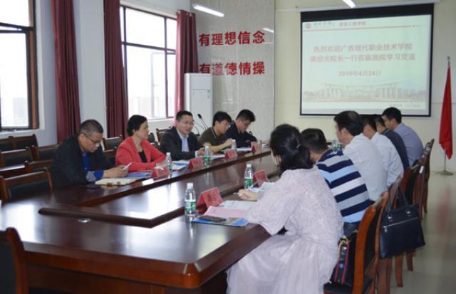 日前,广西现代职业技术学院党委副书记、院长黄绍光一行在校党委副书记刘晓燕陪同下,到我校建筑工程学院考察,就产学合作协同育人项目等进行交流。座谈会上,刘晓燕对客人的来访表示热烈欢迎,随后双方简要介绍了各自学校的发展概况,...