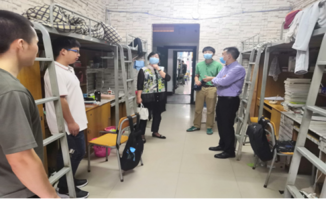 为深入了解疫情防控期间返校学生的生活状态,表达学校对返校学生生活和健康的关怀与爱护,5月20日晚,党委书记刘冬来到文学与传媒学院宿舍,看望他所联系的宿舍同学和贫困学生。在2栋422室,...