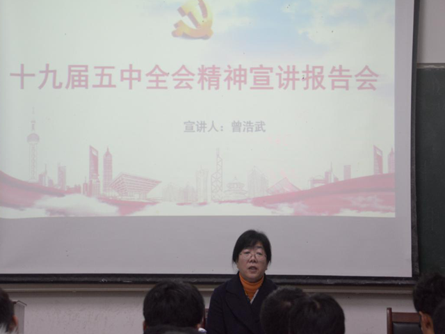 11月24日下午,校党委书记刘冬在图书馆学术讲堂以“擘画蓝图、砥砺奋进——学习党的十九届五中全会精神”为题,向我校各级团的骨干、政治辅导员、校级大骨班全体学员、大学生理论宣讲团成员、学生党员、团支书代表等250余人宣讲党的十九届五中全会精神。...