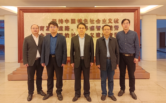 11月4日,信阳师范学院马克思主义学院院长唐国战、党委书记朱四倍、副院长周智一行来我校考察交流。校党委书记李明斌接待来访客人。党政办、马克思主义学院负责人陪同接待。在我校VR思政教学研究中心举行的座谈会上,...