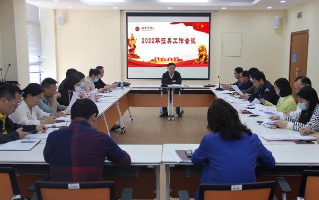 4月8日下午,我校在行政楼一楼会议室召开征兵工作会议,总结工作经验,明确目标任务,安排部署学校2022年大学生征兵工作。校党委委员、副校长李敏出席并主持会议,各二级学院及相关部门分管负责人,校武装部全体成员参加了会议。...