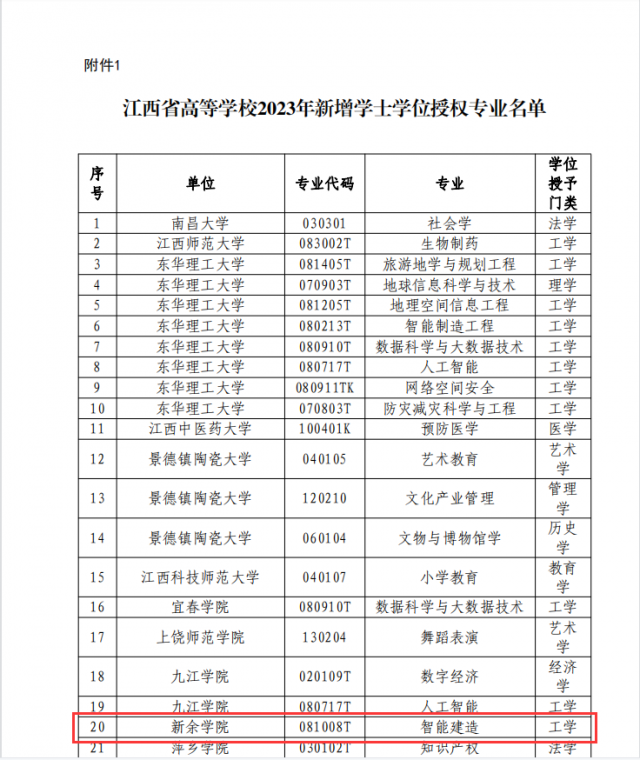 近日,江西省人民政府学位委员会办公室公布了2023年新增学士学位授权专业名单,我校智能建造专业顺利通过审核。为有序推进我校2023年新增学士学位授权专业审核工作,教务部于2022年9月年启动新增学士学位授权专业审核工作。...