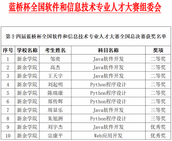 近日,由工业和信息化部主办的第十四届“蓝桥杯”全国软件和信息技术专业人才大赛全国总决赛比赛结果揭晓。数学与计算机学院选派参加决赛的10名学生全部获奖,其中全国二等奖6项,全国三等奖2项,全国优秀奖2项。该院高度重视包括“...