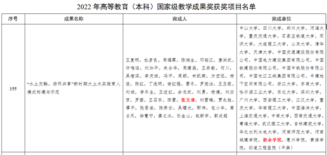 日前,教育部下发《教育部关于批准2022年国家级教学成果奖获奖项目的决定》(教师〔2023〕4号)公布了2022年国家级教学成果奖名单,我校校长张玉清教授带领建筑工程学院团队参与完成的《“水土交融,场网共享”新时期大土木实践育人模式构建与示范》...