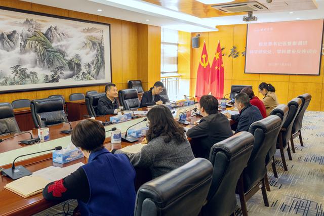 11月28日,校党委书记伍复康对科研和学科建设工作进行了调研。伍复康首先听取了科研处负责人的工作情况汇报,对科研处在科研管理等方面取得的成绩给予了充分肯定,对科研管理制度的优化、效果和改革痛点、难点等进行了深入细致的调研,...