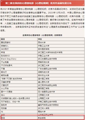 近日,第三届全国高校心理微电影优秀作品展获奖名单公布,我校原创心理微电影《回响》获评全国高校心理微电影创新剧目。 据悉此次大赛于2023年4月正式启动,学校高度重视,积极动员,在全校范围内征集、选拔优秀作品。...