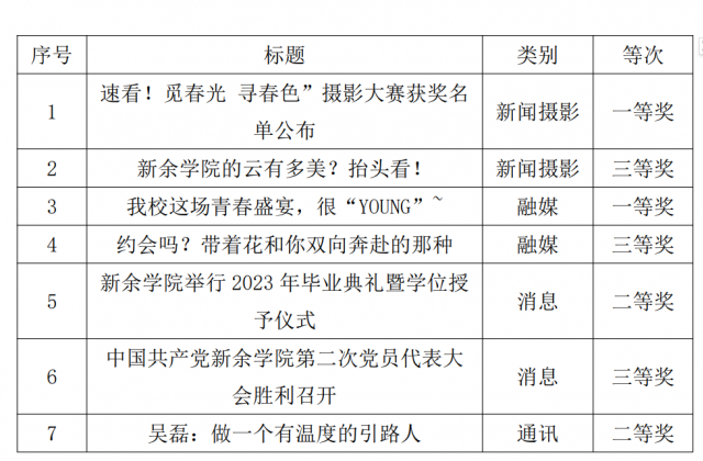 2024年12月31日,全省高校校报好新闻(2023年度)评选结果公布,我校7篇新闻作品获奖,其中一等奖2项,二等奖2项,三等奖3项。 本次评选活动经省委教育工委、省教育厅批准同意,由江西省高校校报研究会组织开展。...